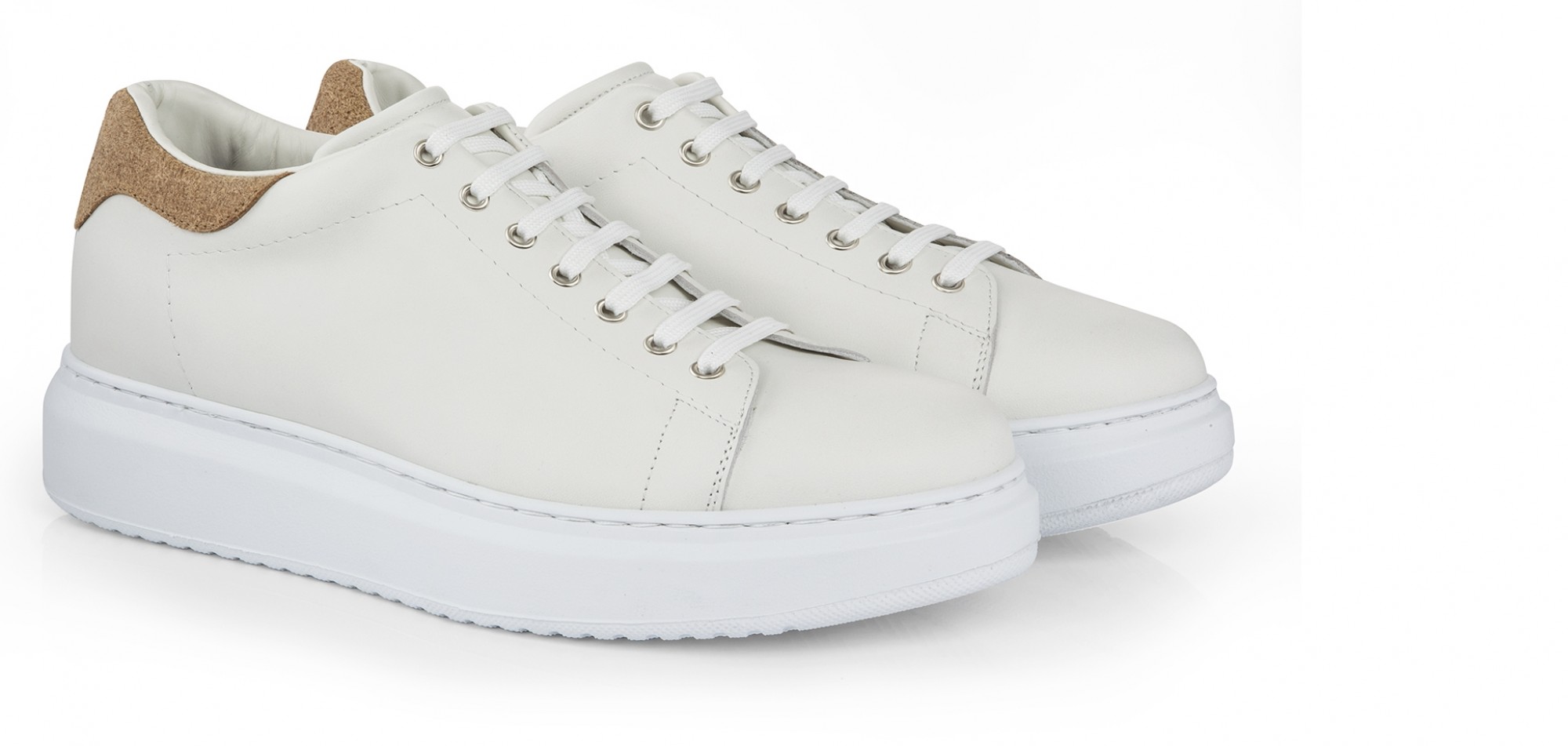Sneakers rialzanti con tomaia in pelle pieno fiore di colore bianco e suola tono su tono in gomma naturale superleggera che assicura il comfort delle scarpe sportive.