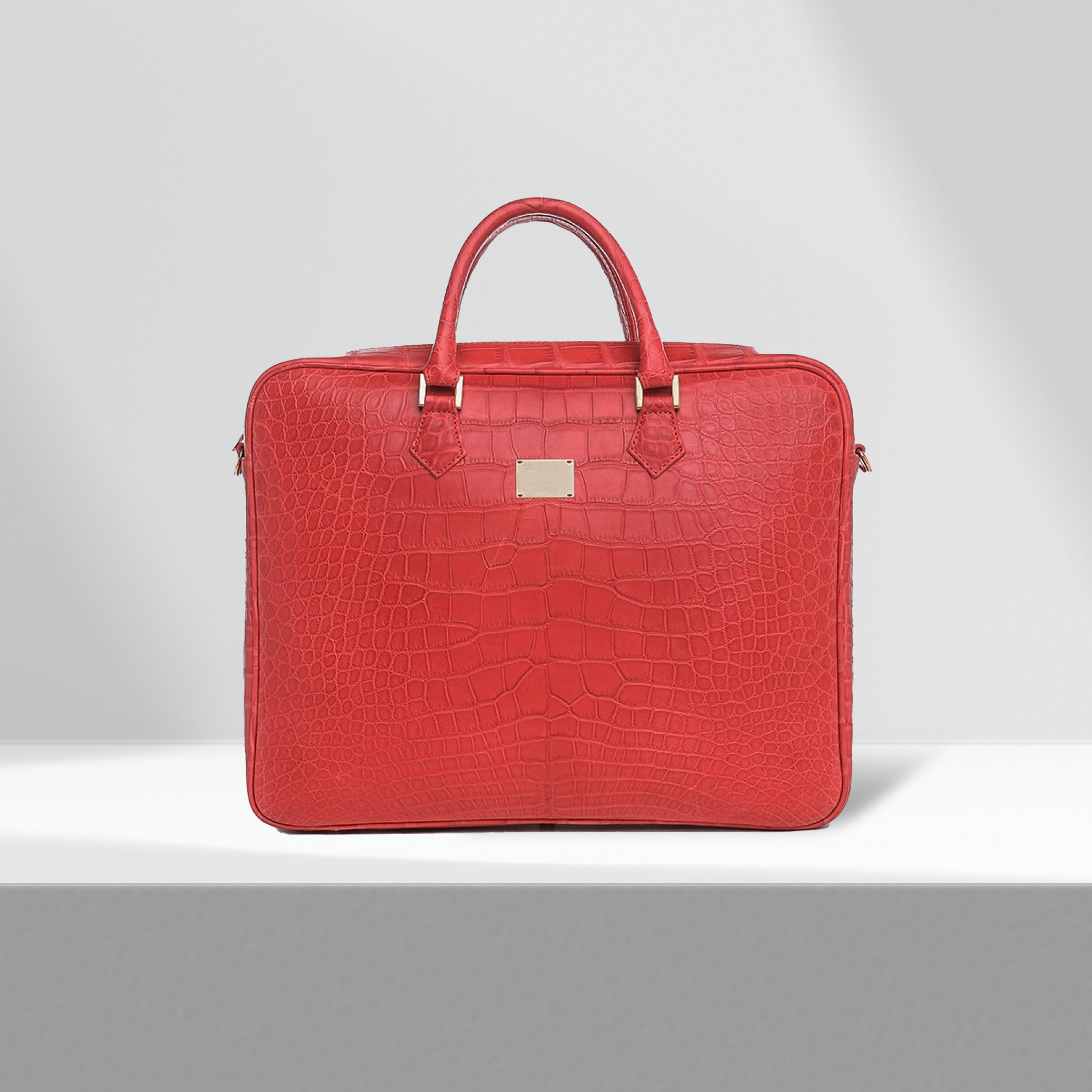 La Red Erik è una ventiquattrore di lusso pensata per il business man moderno, creata in pelle Hermè di coccodrillo dalla vibrante tonalità rossa. Disegnata e realizzata a mano dagli artigiani GuidoMaggi, questa borsa esclusiva offre ampi vani interni, zip dorate e una tracolla regolabile per la massima praticità. Perfetta per contenere documenti e laptop durante i viaggi d’affari, combina funzionalità e stile raffinato. Puoi anche personalizzare la targhetta frontale in oro 24 carati, incidendo il tuo nome, le iniziali o una frase speciale. Un simbolo di lusso, realizzato con maestria in Italia.