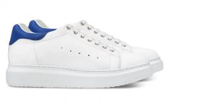 Il brand leccese propone la classica sneaker low-top total white con chiusura a lacci e punta arrotondata, realizzata in pelle pieno fiore bianca liscia per essere traspirante e morbida. Lo speroncino, che dona carattere e verve alla calzatura, nei colori moda rosso-bordeaux , blu e verde per uno stile trendy ma nello stesso tempo ricercato e su misura. Sono modelli rialzanti confortevoli e dinamici, adatti alla vita di tutti i giorni, in grado di aumentare la statura, in maniera discreta, fino a 8 centimetri. Uno slancio della figura che incrementa anche il proprio fascino e la fiducia in se’ stessi.
