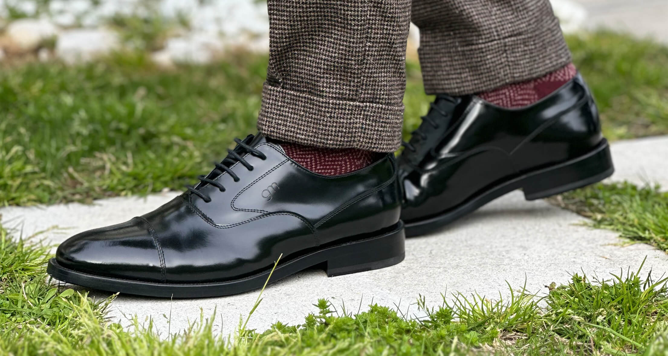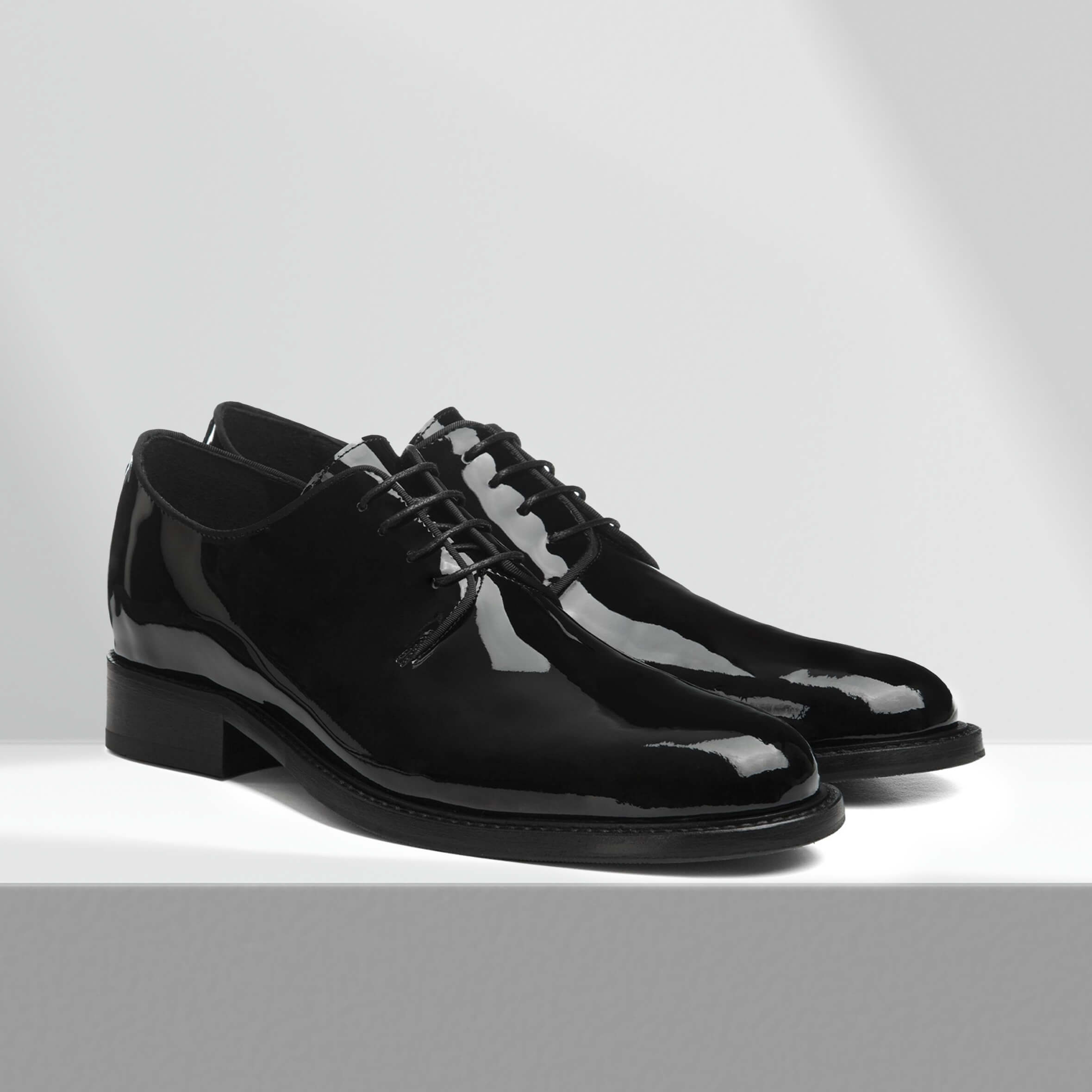 Per chi vuole copiare il suo look nelle occasioni speciali, ci sono le stringate nere lisce Churchill di GuidoMaggi: Oxford con rialzo wholecut realizzate a mano con un unico pezzo di pelle verniciata nera di altissima qualità, con bordini tono su tono e finiture impeccabili perfette per un outfit da red carpet. La suola in cuoio 100% italiano garantisce comfort e durata, mentre il rialzo interno può aggiungere fino a 8 cm di altezza in più.