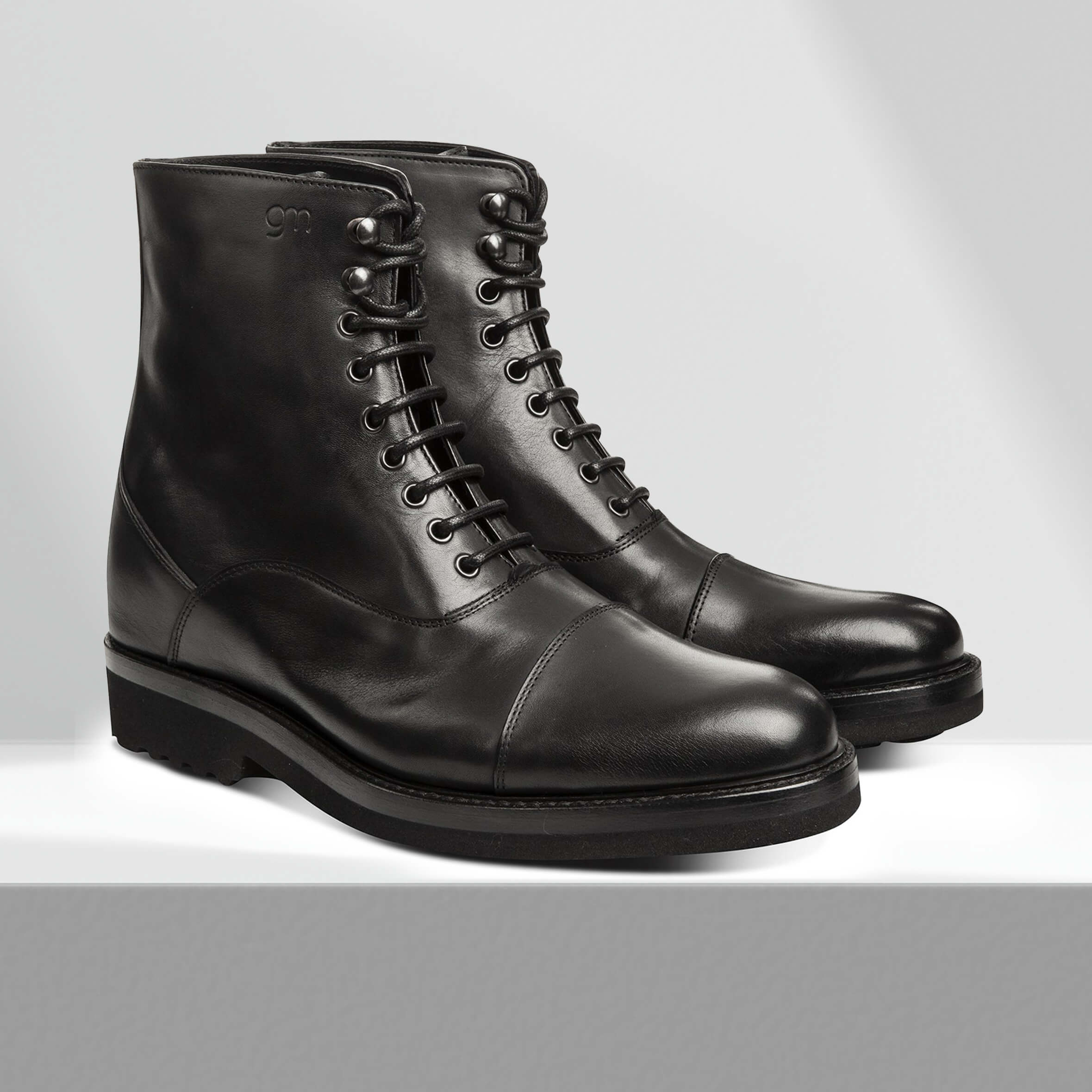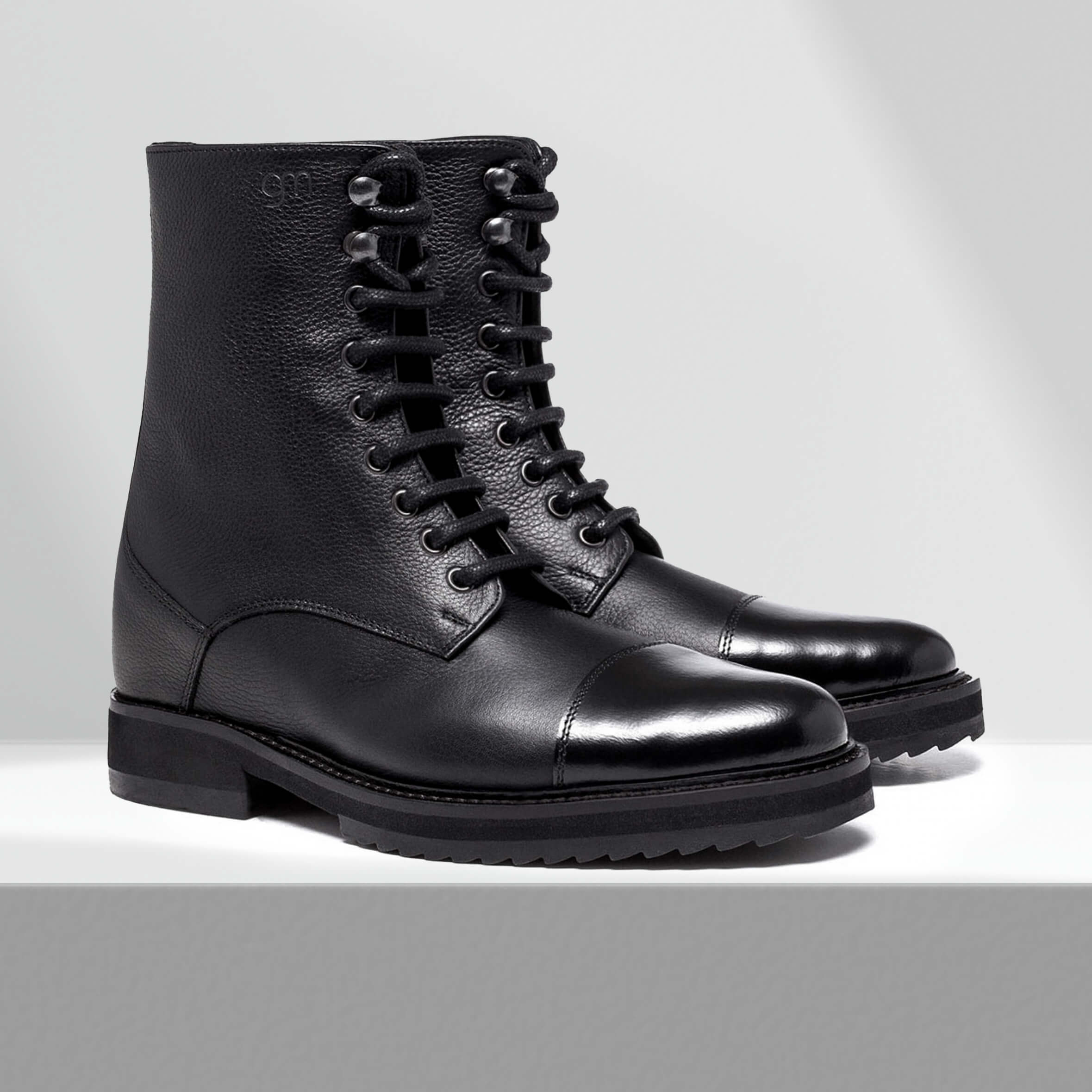 Se preferisci un mood più urbano, l’anfibio Volga è l’opzione ideale. Realizzato in pelle pieno fiore martellata e vitello abrasivato sul puntale, ha un rialzo interno invisibile fino a 10 cm. È perfetto con jeans, pantaloni cargo o look sportivi, per chi cerca robustezza e stile.