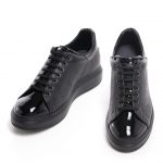 Chiudono la carrellata le sneakers Windsor. Anche in questo caso, qualità e stile sono le parole d’ordine: con tomaia in velluto blu scuro e dettaglio in vernice tono su tono sul talloncino posteriore, sposano praticità e classe senza rinunciare al giusto comfort. Rialzo di 6,5 cm.