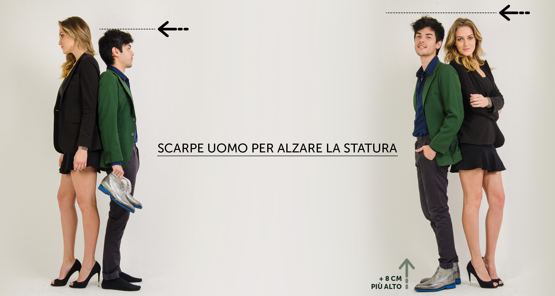 Per fortuna, oggi esistono soluzioni semplici ed efficaci per sentirsi più a proprio agio, come le scarpe rialzate, che permettono di aumentare la statura, e diversi modi per comporre outfit capaci di migliorare l’equilibrio delle proporzioni e la percezione della propria immagine, restando fedeli al proprio stile.