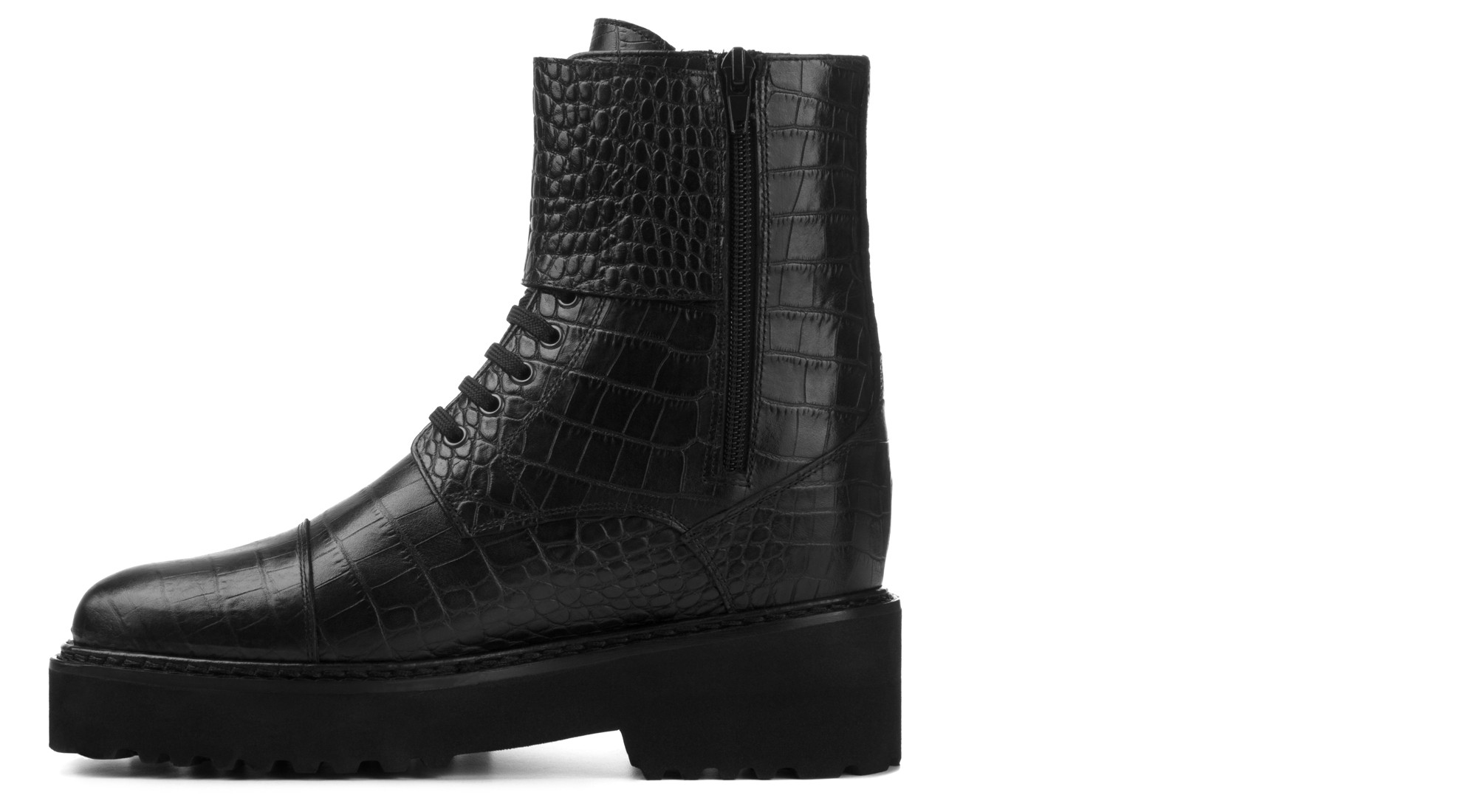La tomaia è in vitello con ricercata stampa in coccodrillo. È dotato sia di lacci che di chiusura con la doppia fibbia. Punta morbida e arrotondata. Handmade in Italy.