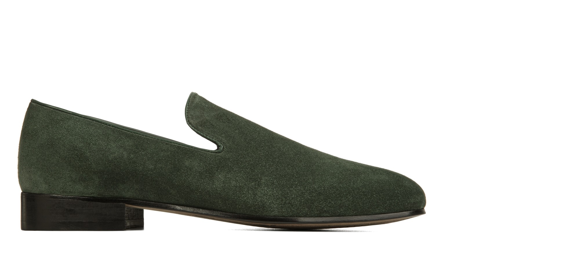 Elegante pantofola rialzante fatta a mano in Italia con tomaia in suede verde “Greenery”. Una tonalità fresca che rievoca la primavera, quando la natura si risveglia. La fodera interna è in morbida pelle, la suola in cuoio è cucita a vista.