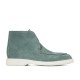 Elegante polacchino con rialzo senza lacci, ma con elastici laterali nascosti sotto l’apposita linguetta per assicurare una maggiore vestibilità. Realizzato a mano e su misura, ha la tomaia in morbida suede, color testa di moro, con cucitura a vista anteriore. La suola è in gomma a contrasto grigia.
