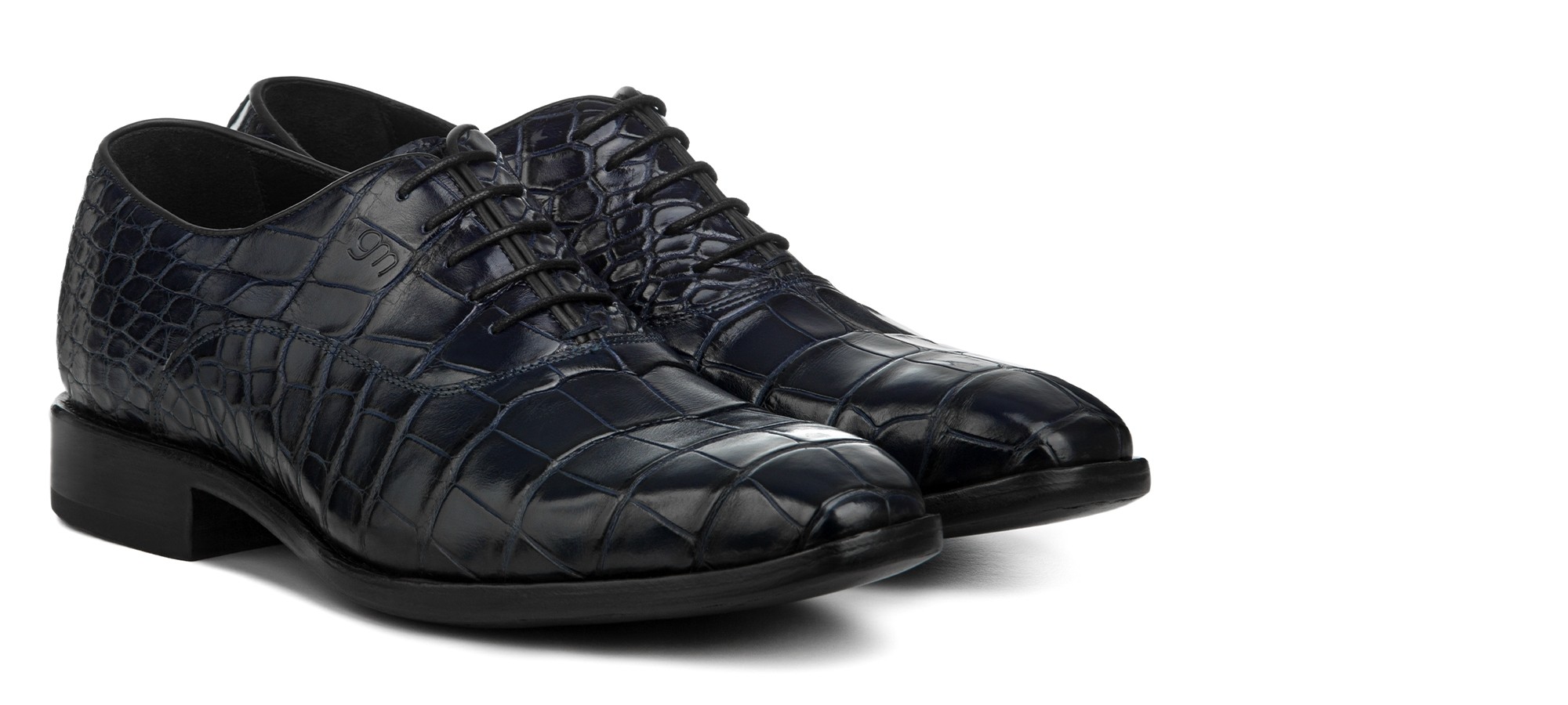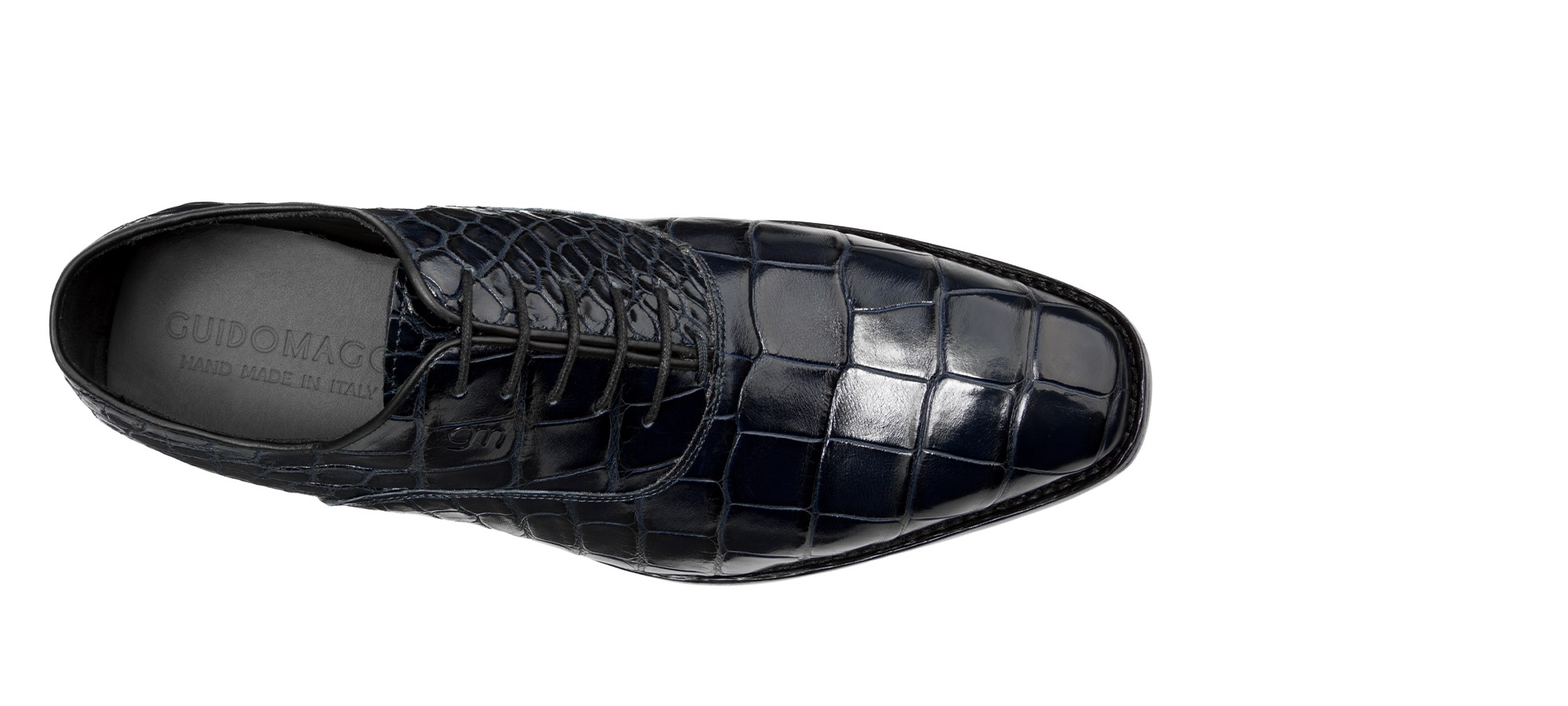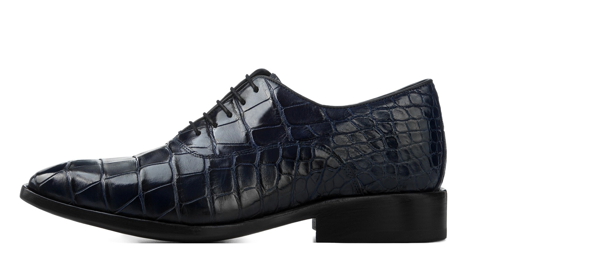 La francesina Esperia rappresenta il vertice dell’eleganza artigianale. Realizzata interamente a mano, si distingue per la pregiata tomaia in vera pelle di coccodrillo, scelta per rarità e raffinatezza. La punta leggermente squadrata dona un tocco contemporaneo a un design maschile e deciso.