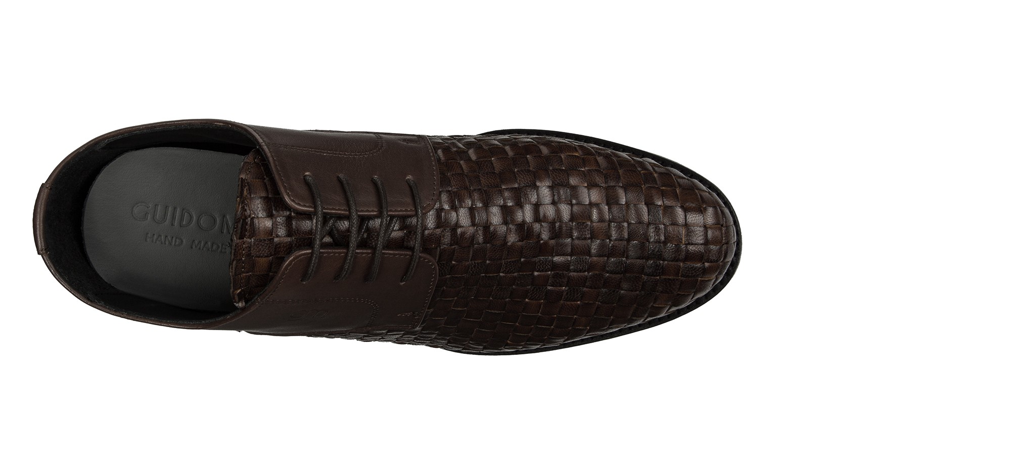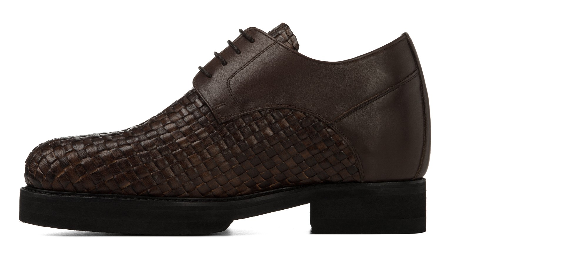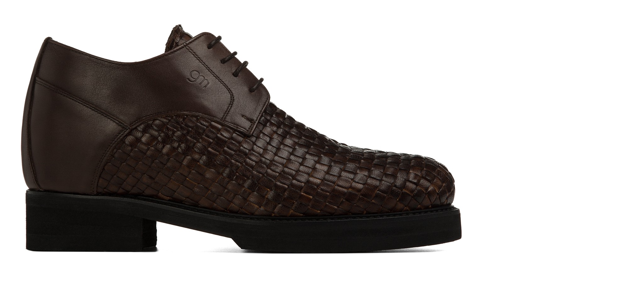 La nuova derby con rialzo firmata GuidoMaggi ha carattere da vendere. In tow tone, gioca con i toni del marrone, ma anche con la doppia lavorazione: tomaia in pelle pieno fiore intrecciata a mano nella parte anteriore, liscia nella parte posteriore. Un contrasto di colori e stili che le dona esclusività e decisione.