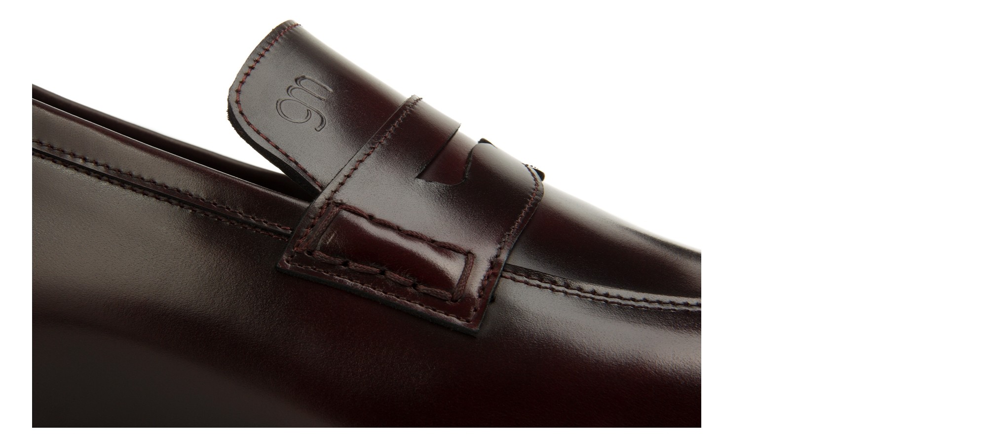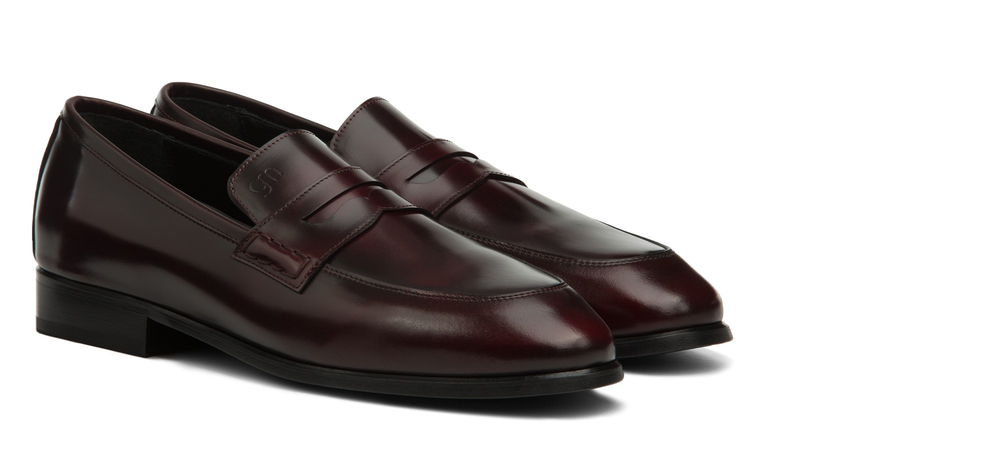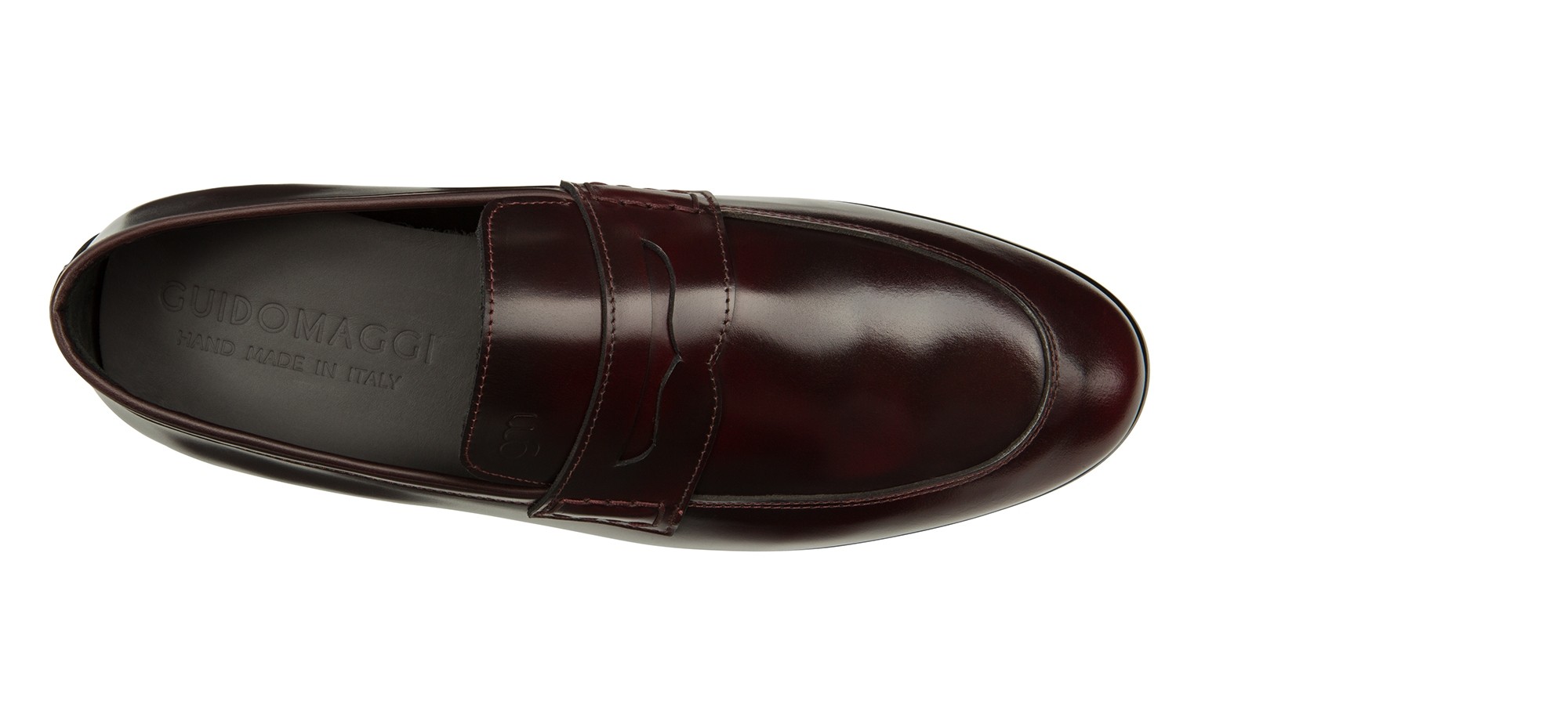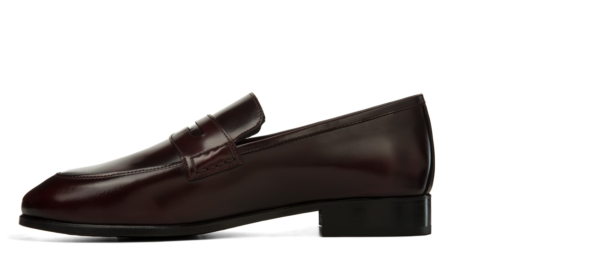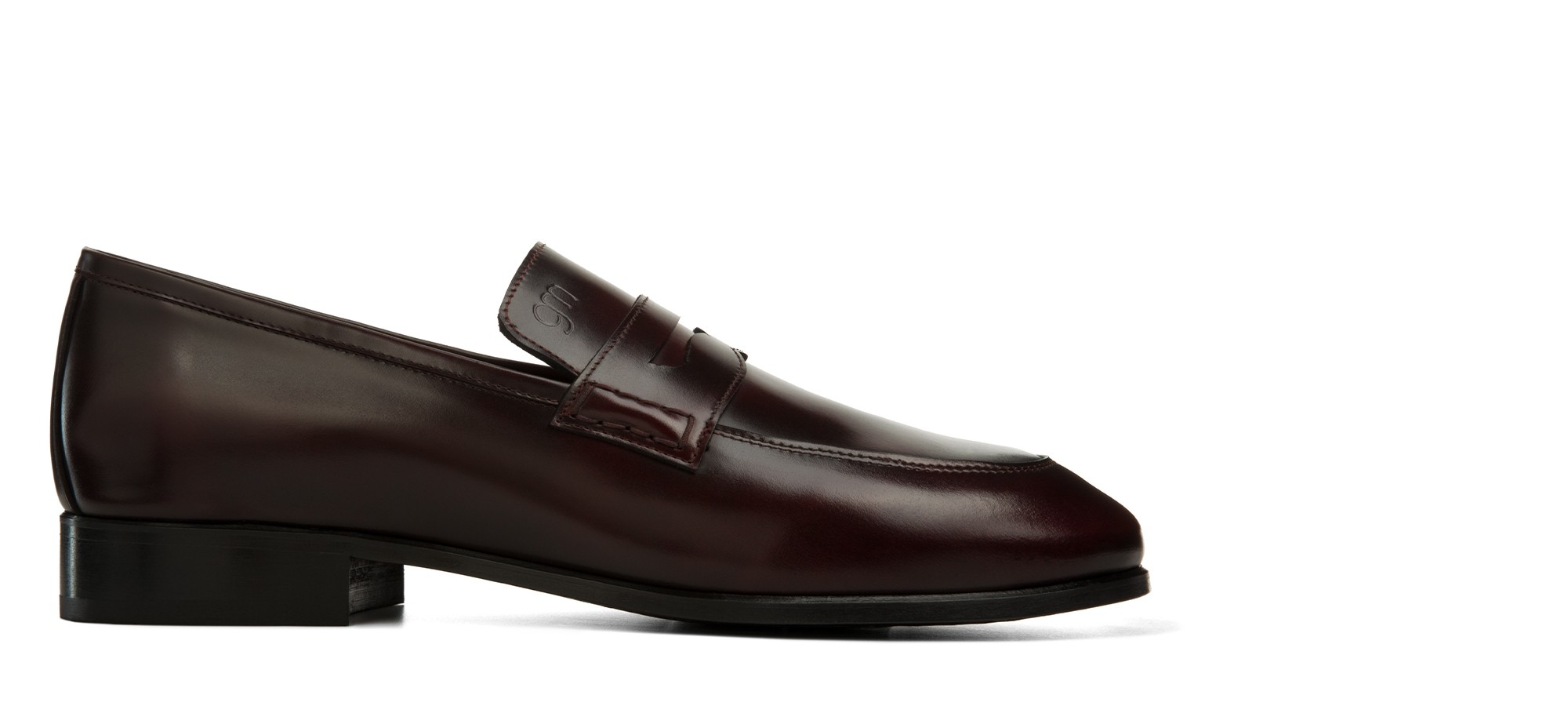Raffinato: il mocassino rialzante Lucerne è realizzato in pelle di vitello spazzolato dalla nuance bordeaux scuro e suola in vero cuoio cucita a mano.