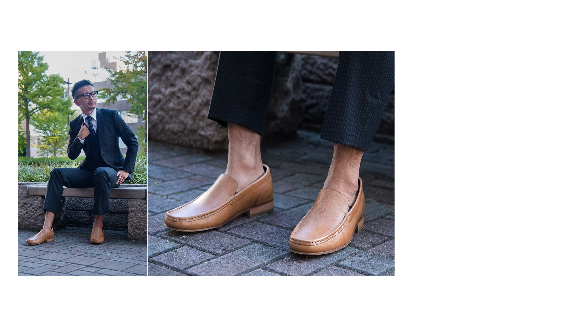 Elegante mocassino rialzante senza morsetto lavorato artigianalmente con tomaia in pelle di vitello crust tamponata a mano dalla colorazione light cognac e suola in vero cuoio cucita a vista.