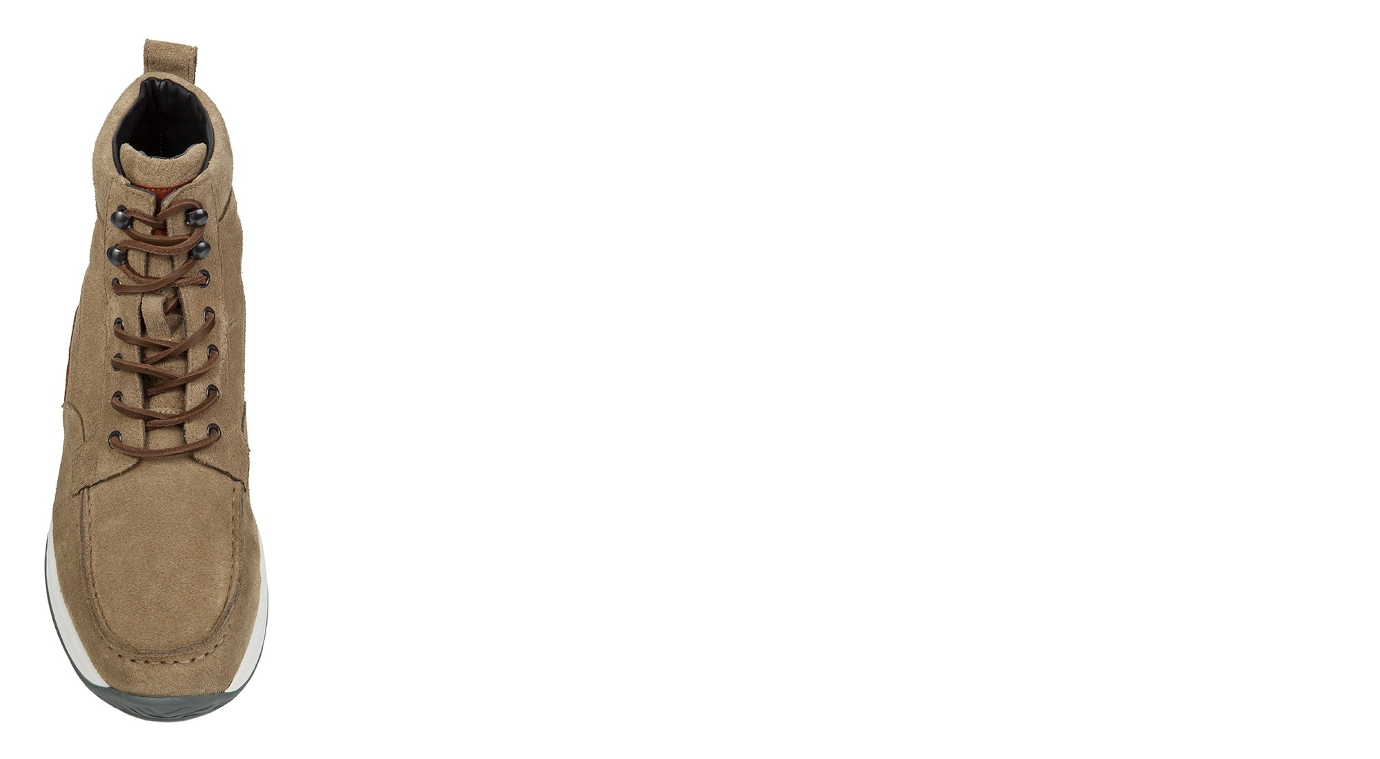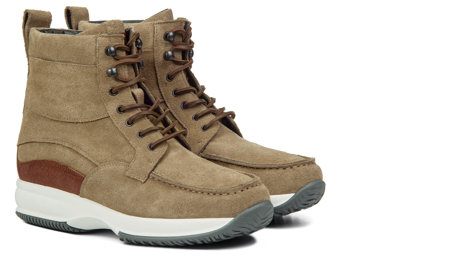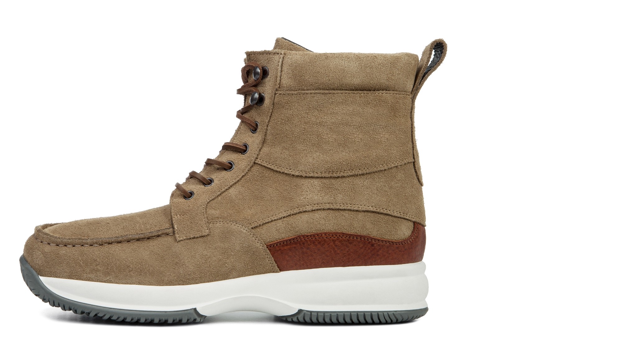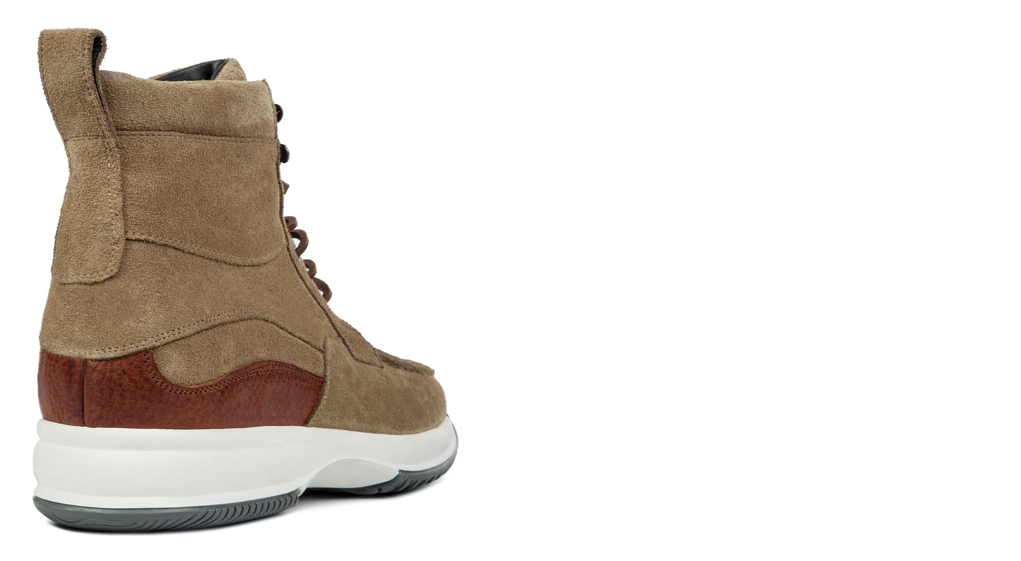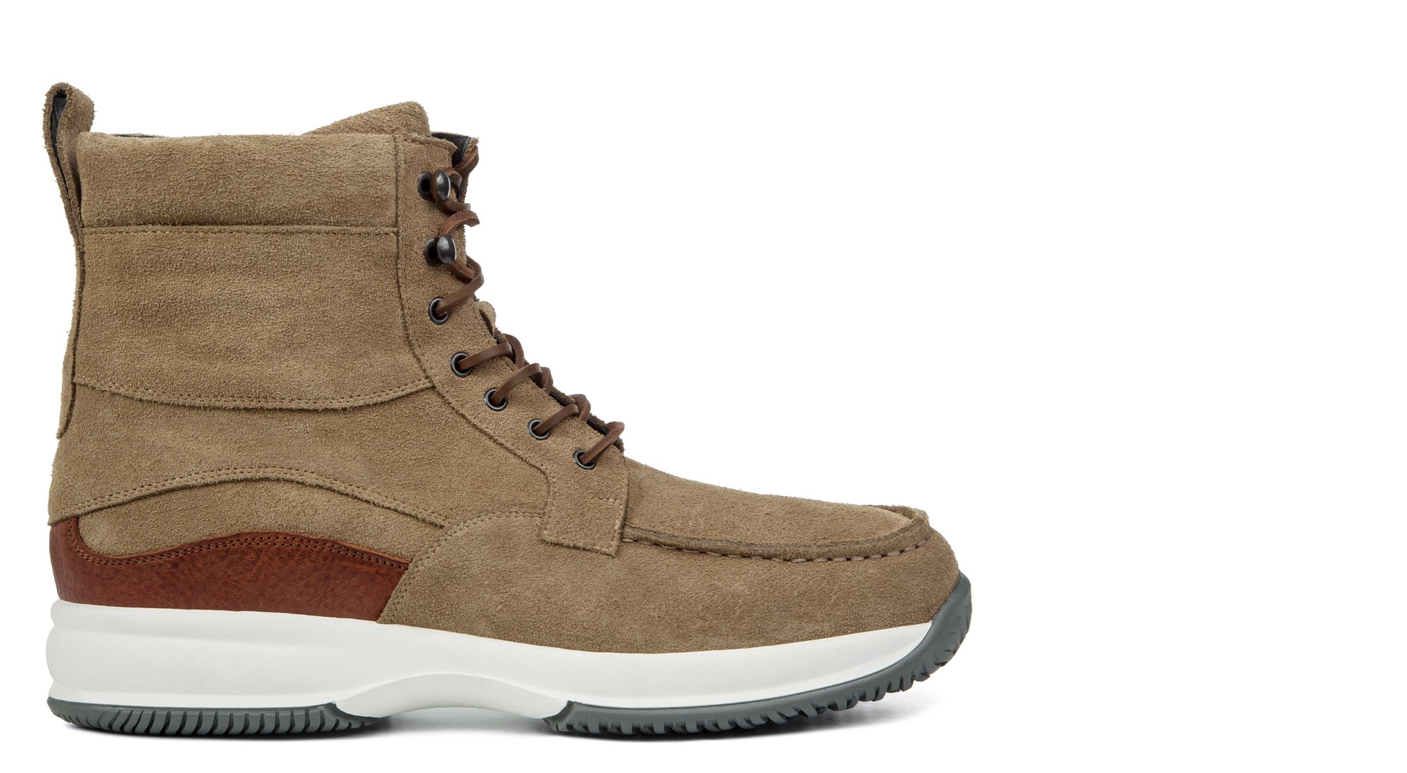 • Tomaia in pelle di vitello scamosciato grigio tortora