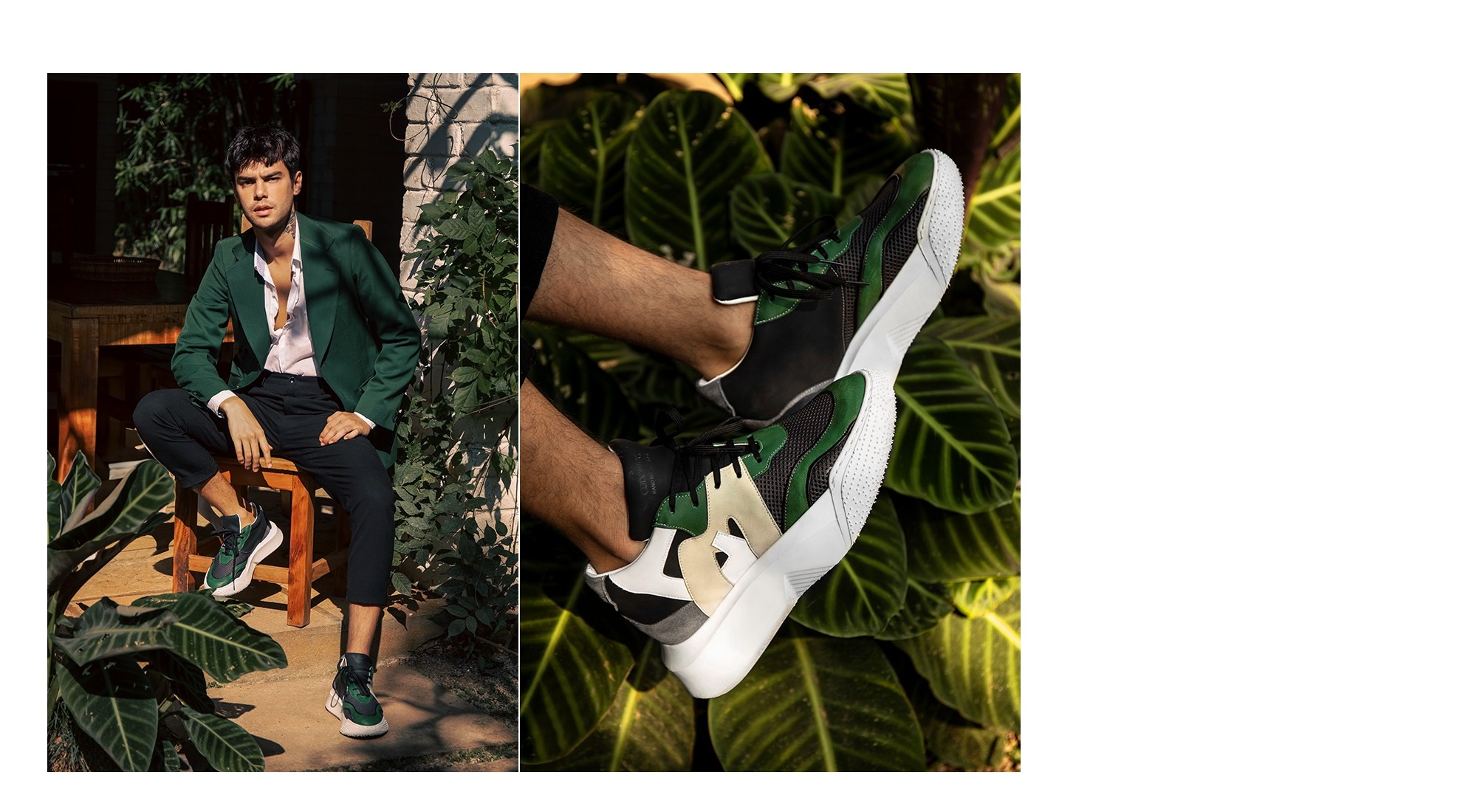 Torna alla ribalta lo stile anni ’90, quando le scarpe dalle maxi suole erano uno status symbol della cultura hip pop. O’Neal è una chunky sneaker rialzante realizzata in pelle di vitello gommata bianca e nera, pelle pieno fiore conciata al vegetale dalle nuance verde e grigio chiaro, suede grigio e tessuto forato traspirante color grigio steel. La suola di colore bianco è in gomma naturale superleggera.