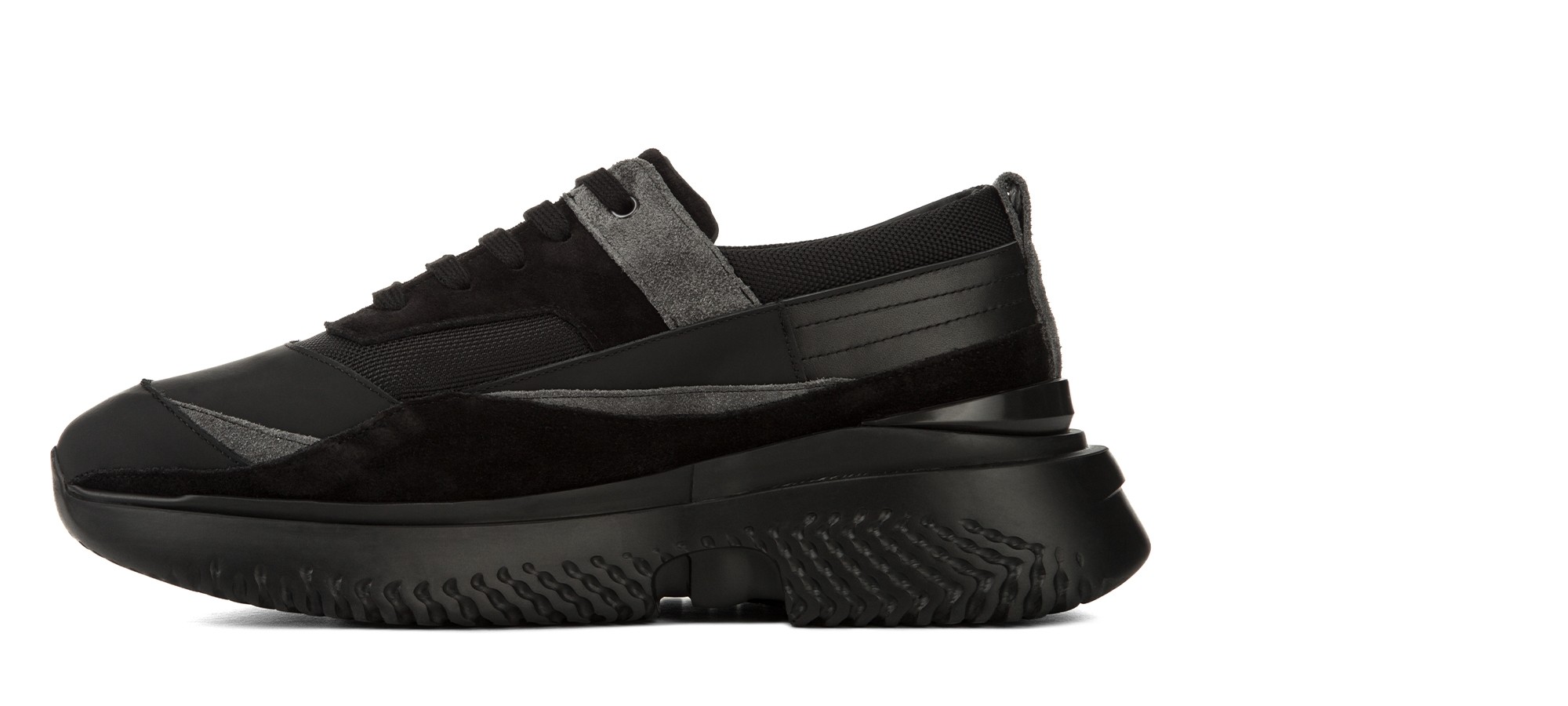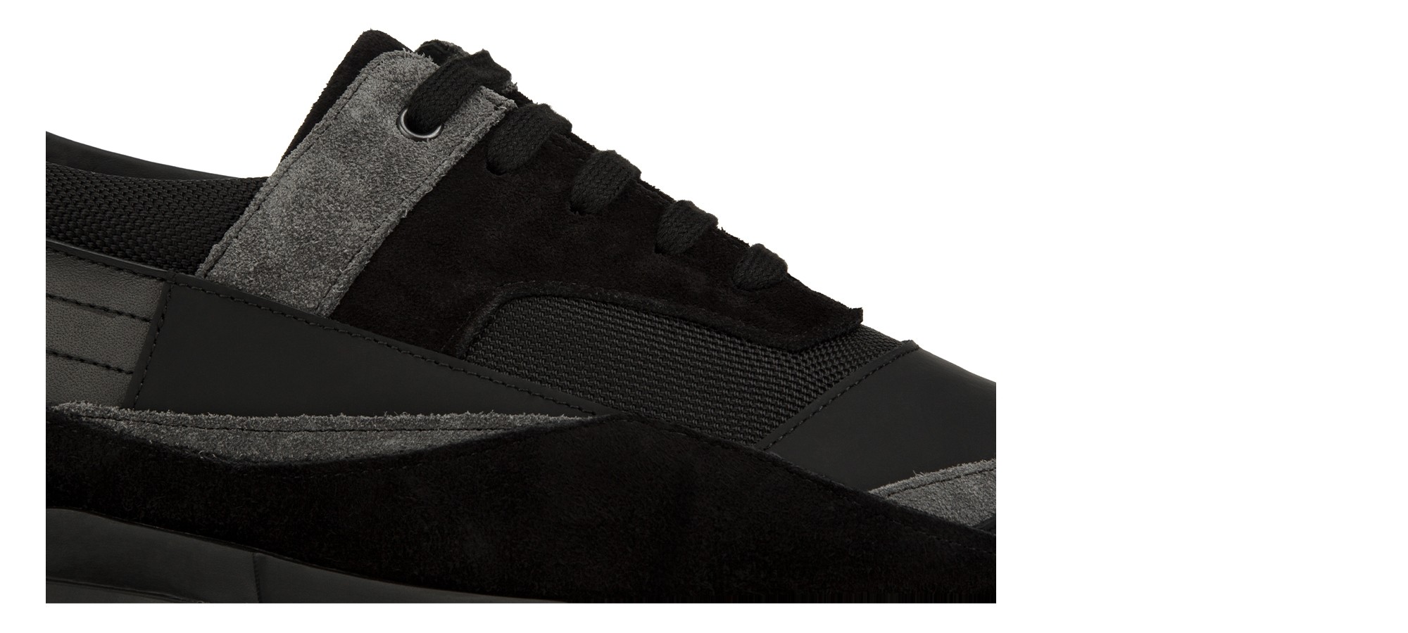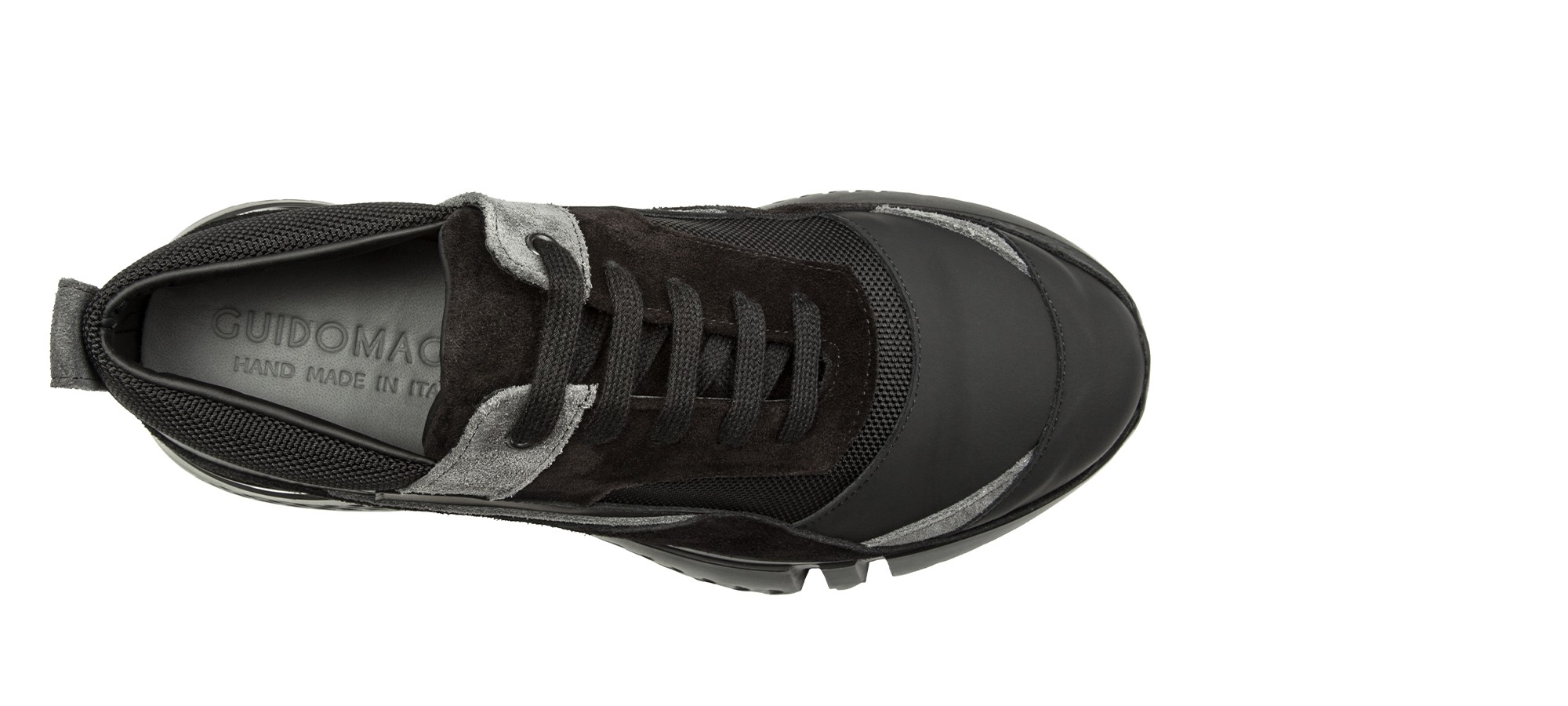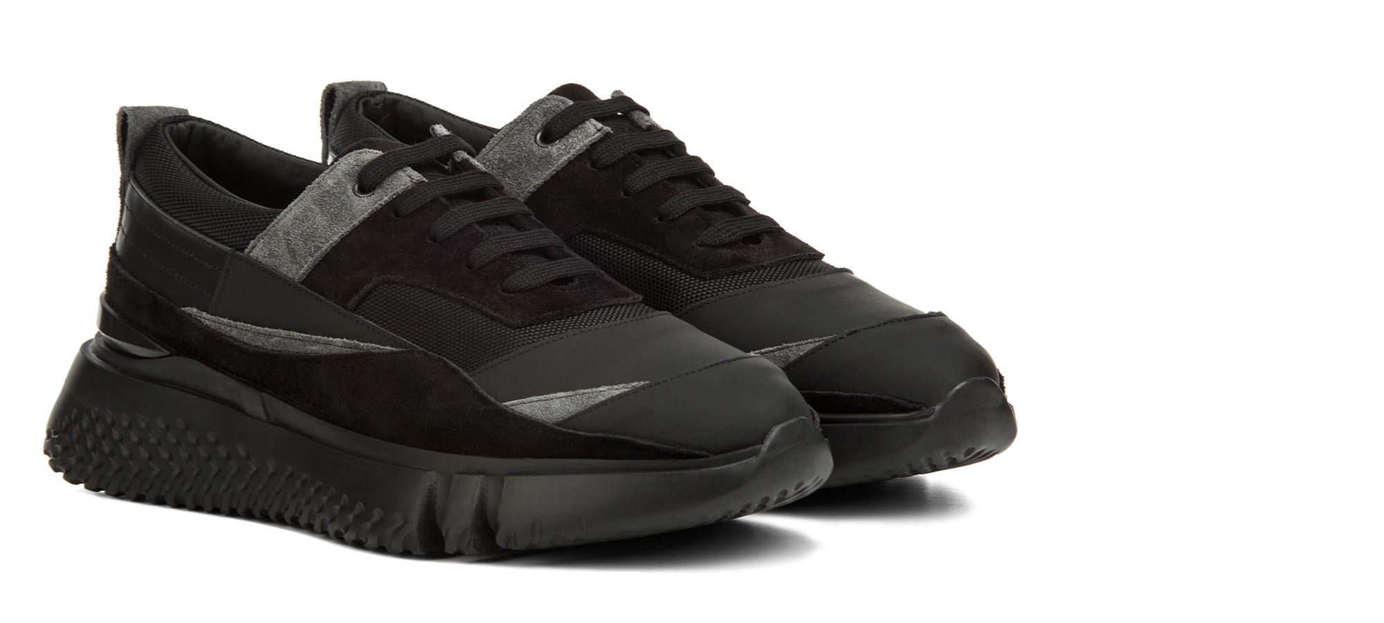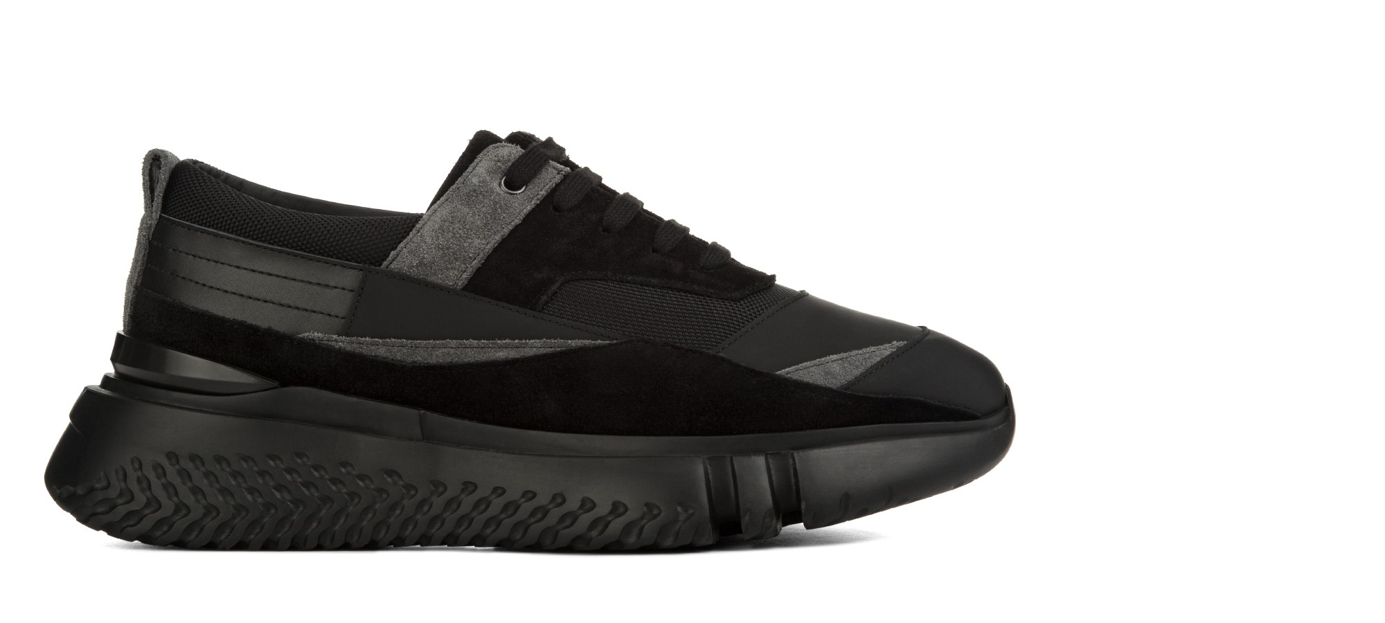 La sneaker tecnica Madonnella abbina materiali innovativi e un profilo sportivo-luxury. Il mix di pelle pieno fiore , pelle con effetto gommato e morbido suede crea un design dinamico e contemporaneo.