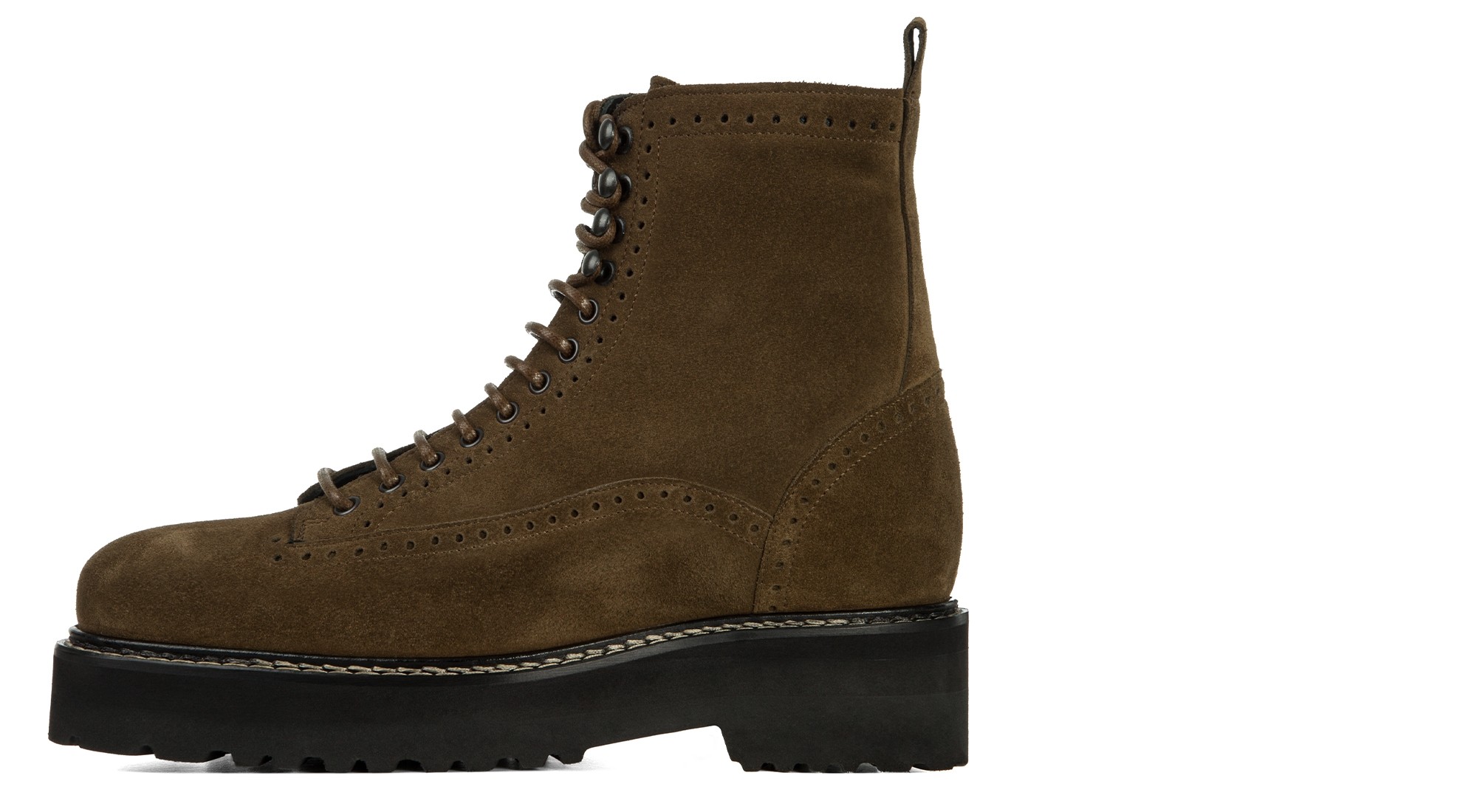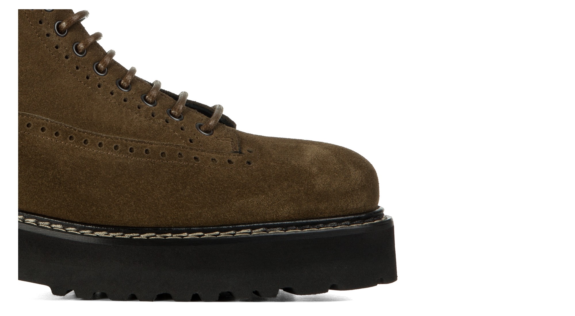 L’anfibio Castelletto in suede color tabacco è un modello raffinato, caratterizzato da impunture a mano brogue e suola robusta ma leggera. La pelle scamosciata dalla particolare nuance conferisce un tocco esclusivo e ricercato.