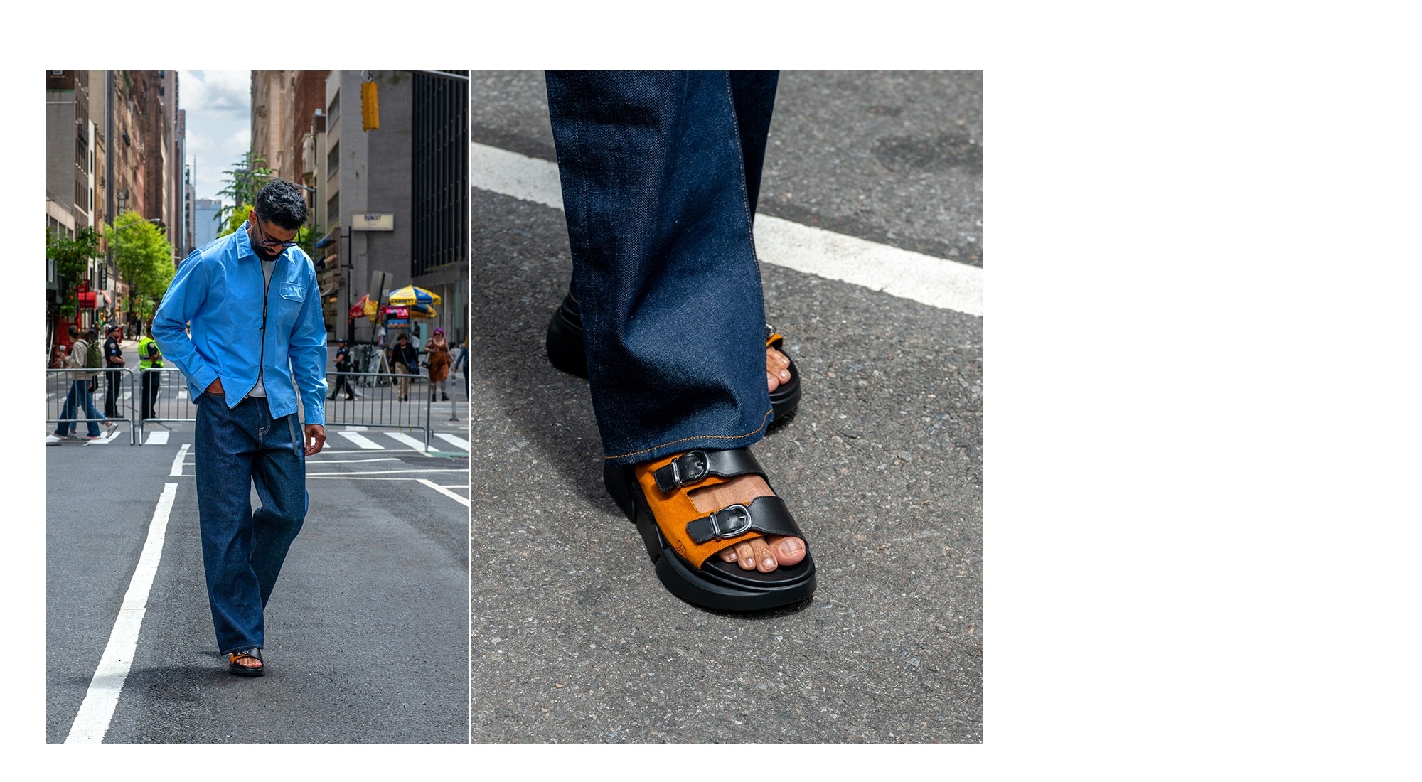Sandalo con doppia fibbia realizzato in pelle scamosciata dalle nuance dell'arancione e pelle pieno fiore nera, ideale per look casual estivi e giornate all’insegna del relax. La tomaia ultra morbida con due fasce e maxi fibbie garantisce comfort e stile.